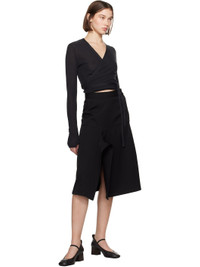 Black Asymmetrical Wrapover Midi Skirt