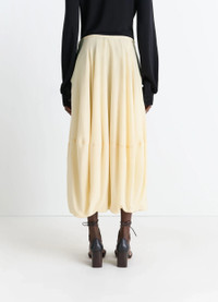 This midi balloon skirt has a generous, flowing volume. It's made from silk crepe de Chine, an archetypal fabric for women's wardrobes. The model is 177 cm and is wearing a size 36 (S). DETAILS Balloon skirt in silk crepe de chine Regular and fluid fit Midi-length Partially lined model Thin waistband Side closure with invisible zipper and hook Horizontal panel Made in Portugal Style : SK1053 LF1446 CARE Main Material: 100% Silk Main Lining: 100% Cotton Do not wash Do not bleach Do not tumble dry Cool ironing Soft dry clean