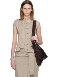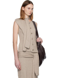 Beige Asymmetrical Sleeveless Cardigan