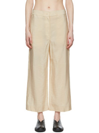Silk and nylon-blend crepe trousers. · Belt loops · Zip-fly · Central crease at front legs · Three-pocket styling · Cropped cuffs Supplier color: Butter milk 76% silk, 24% polyamide. Made in Bulgaria 221646F088006