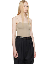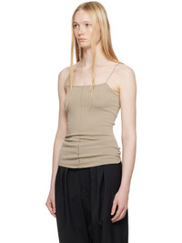 Knit viscose-blend tank top. · Rib-knit scoop neck and curved hem · Pointelle seam at front and back · Fixed spaghetti straps Supplier color: Mastic 75% viscose, 25% polyamide. Made in Italy 251646F111000