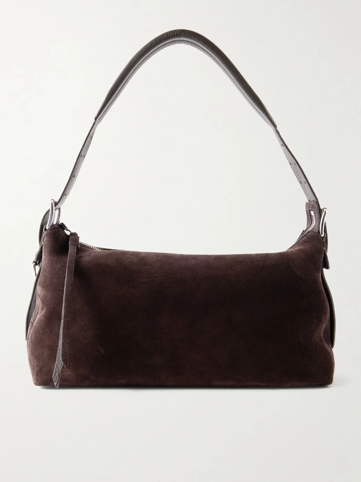 Bags as sleek and understated as Lemaire's 'Baguette' boast years of sartorial mileage - designed to be reinvented every time you wear it. Updated with an adjustable belt-inspired shoulder strap, it's crafted from suede with a reinforced base. There's space inside for your phone, keys, wallet and cosmetic touch-ups. Lower-Impact Materials. This product is made using at least 50% lower-impact materials or ingredients. Find out more about our NET SUSTAIN criteria here.