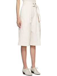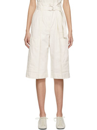 Cotton canvas shorts in off-white. · High-rise · Four-pocket styling · Integrated belt at waistband · Patch pockets at front · Zip-fly Supplier color: Chalk 100% cotton.
