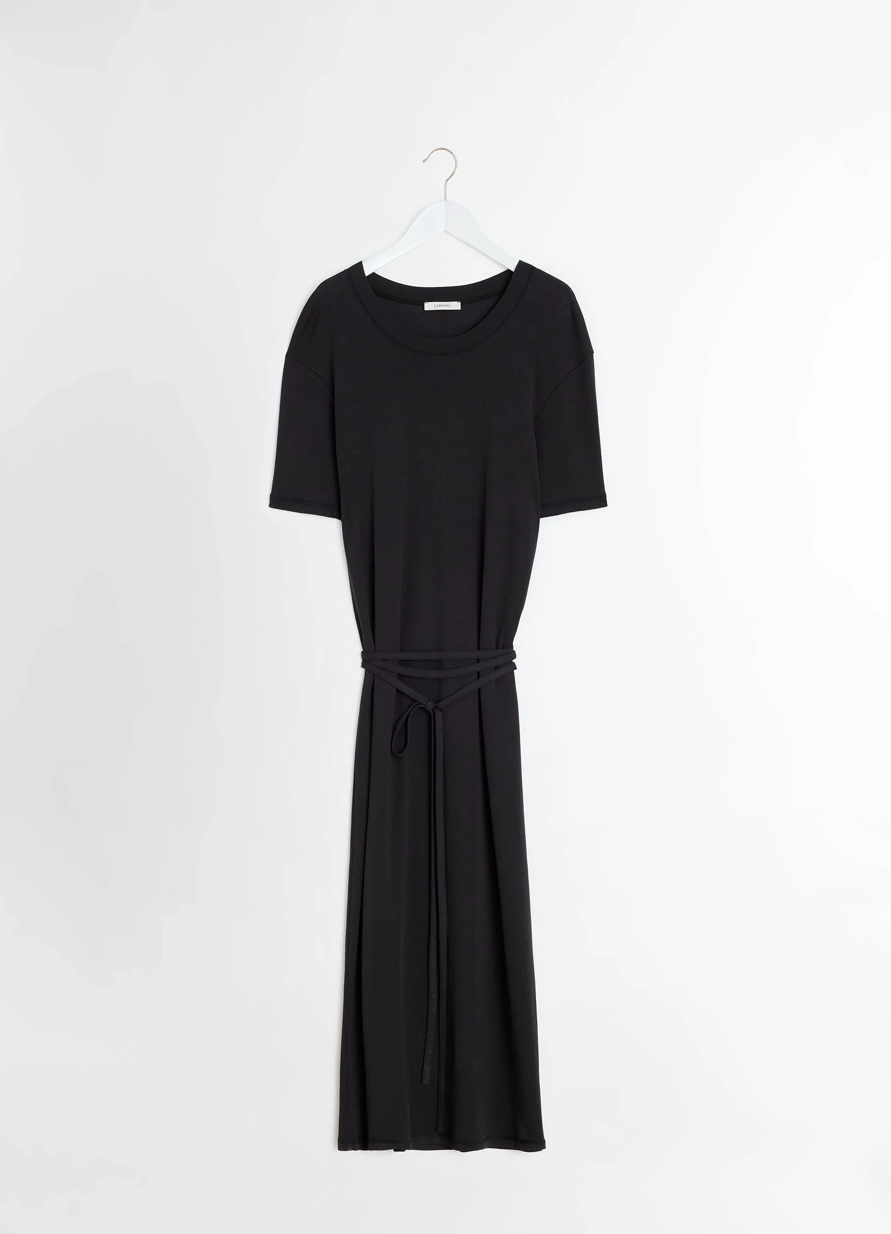 This Belted Rib T-shirt Dress is a staple of LEMAIRE’s feminine wardrobe. It is made of a mid-weight cotton jersey woven into a soft, flexible rib with a textured quality. The loose, ankle-length shape features an open round neck and rounded shoulders. Details include a ribbed collar, flat shoulder seams and a removable matching belt - long enough to be belted several times around the waist. DETAILS - Relaxed fit - Removable matching belt - Below-the-knee length - Elbow-length sleeves. - Ribbed collar and cuffs Made in Portugal Style: DR1045 LJ1016 The Model is 180cm / 5'11" ft and is wearing a size 36 (S). CARE Main Fabric: 100% Cotton Soft wash 30° Do not bleach Do not tumble dry Cool ironing Do not dry clean Dry flat