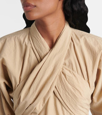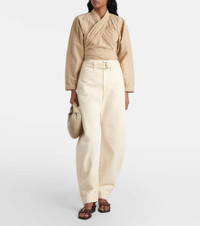 Embrace Lemaire's sophistication with this enveloping top. Made from cotton with a crinkled finish, the design has crossover detailing across the bust and a self-tie belt for a cinched waist. Product Details - Material: 100% cotton - Care instructions: machine wash at 30 degrees - Made in Romania - Designer color name: Natural Beige - Item color: beige - Closure: buttoned back - Self-tie belt - Item number: P01031828 Size & Fit - True to size - Cinched waist - Non-stretchy fabric - Falls to the hip - The model seen in the picture is 178cm-5'10" and wearing a size FR 36