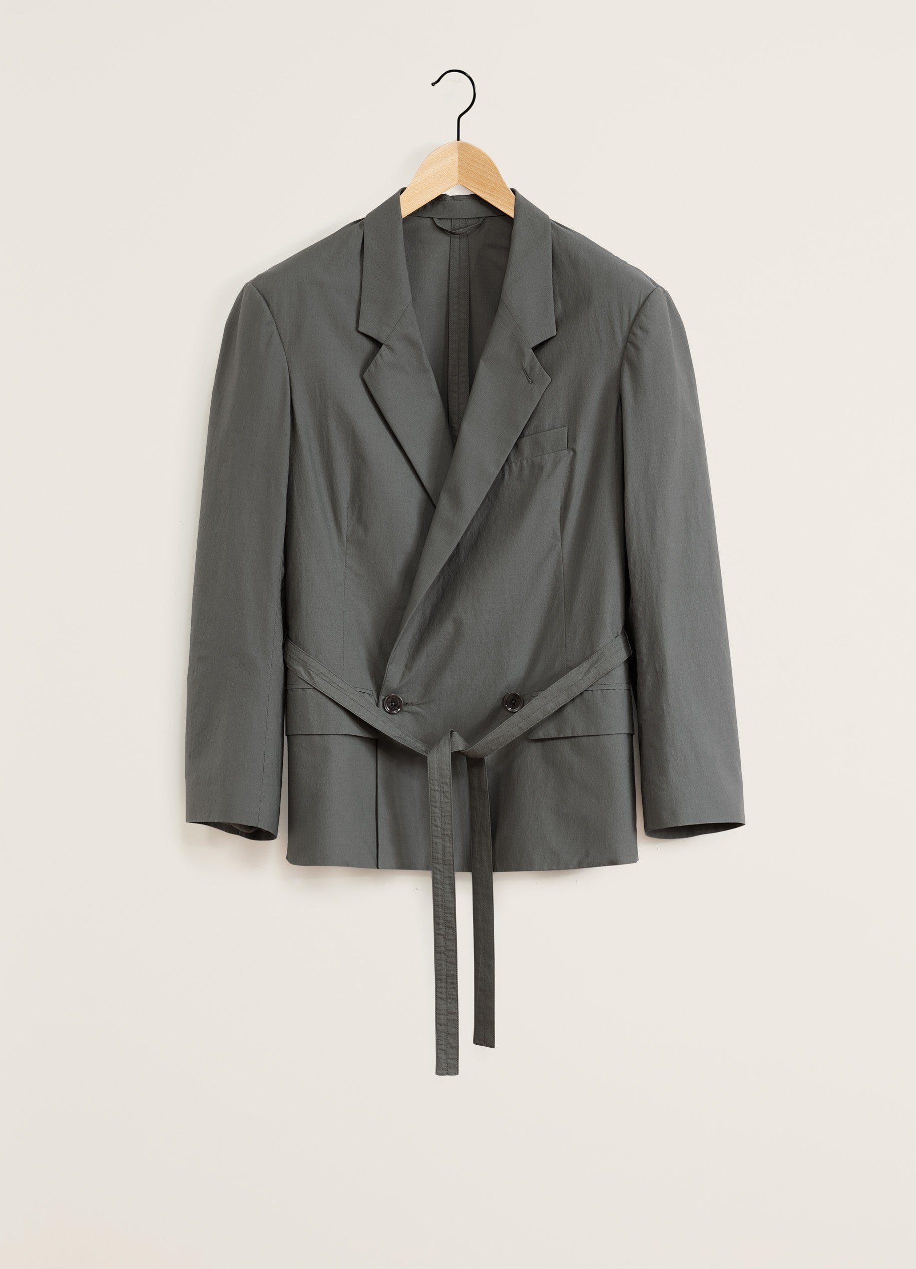 This jacket is a new interpretation of the Belted Jacket, a staple of LEMAIRE’s wardrobe. It is made in cotton silk that has been washed to grant the garment a fluid and lighter hand. Its boxy fit is accentuated by shoulder pads for a more tailored silhouette. The Belted Light Tailored Jacket features two patch pockets with flaps and one chest piped pocket on the front as well as a matching belt to adjust its volume at the waist with side loops. DETAILS Boxy fit - Partially lined - Shoulder pads - Matching removable belt - Convertible collar - Corozo buttons - One interior pocket Made in Slovakia Style: JA1040 LF1209 FABRICS & CARE Main Material: 80% Cotton 20% Silk Secondary Material: 100% Cotton Main Lining: 100% Cotton Soft wash 30° Do not bleach Do not tumble dry Cool ironing Soft dry clean