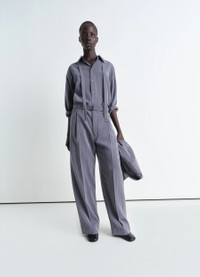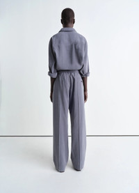 These unisex pants are a new addition to the LEMAIRE wardrobe. The Belted Relaxed Pants are crafted from dry silk, a signature LEMAIRE fabric with a soft and textured hand with a satin-like sheen. This new style features a pleat at the centre of the leg to ensure its straight shape and there are no side seams, which gives it an easy pyjama-like wear. There is a thin belt at the waist in the same fabric with a metal adjuster, side in-seam pockets as well as a single welt back closing with a corozo button. DETAILS - Relaxed fit - Belted - Seam pockets - Single welt back pocket Made in Slovakia Style: PA1134 LF1308 FABRICS & CARE Main Fabric: 76% Silk, 24% Polyamide/Nylon Soft wash 30° Do not bleach Do not tumble dry Cool ironing Soft dry clean