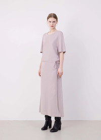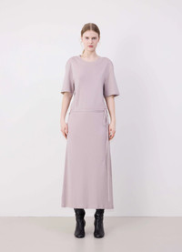 This Belted Rib T-shirt Dress is a new interpretation of the T-shirt Dress, a staple of LEMAIRE’s wardrobe. It is made of a mid-weight cotton jersey woven into a soft, flexible rib with a textured quality. The loose, ankle-length shape features an open round neck and rounded shoulders. Details include a ribbed collar, flat shoulder seams and a removable matching belt - long enough to be belted several times around the waist. DETAILS - Relaxed fit - Removable matching belt - Below-the-knee length - Elbow-length sleeves - Ribbed collar and cuffs Made in Portugal Style: DR1045 LJ1016 FABRICS & CARE Main Material: 100% Coton Soft wash 30° Do not bleach Do not tumble dry Cool ironing Do not dry clean Dry flat