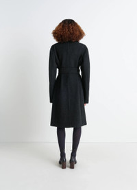 This belted coat is inspired by the world of tailoring, reinterpreted here in a rich, warm fabric. The blend of wool and alpaca gives it texture and relief, as well as lightness. DETAILS Belted coat in a wool and alpaca blend Straight cut Fully lined model Tailored collar with buttonhole and under-button collarLong sleeves Hidden button closure Chest pockets Belt loops and removable belt Two large front pockets Welted inside pocket with button closure Made in Romania Style : CO1119 LF504 The model is 177 cm tall and is wearing a size 36 (S). FABRICS & CARE Main Material: 50% Wool 50% Alpaca Main Lining: 100% Cotton Second Lining: 51% Cotton 49% Viscose Technichal materials: 100% Cow Leather