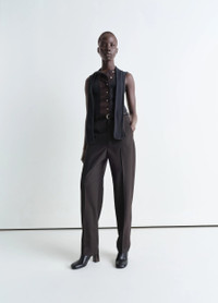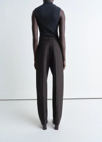 This model is a must-have in the LEMAIRE wardrobe. The Tailored Belted Pants are made of lightweight tropical poly-wool, with a mottled weave and dense, supple hand. This straight-cut model features a tapered leg with a pleat to hold its shape, a slim removable waistband with a fine metal adjuster and belt loops, and a zipper fly. Tone-on-tone topstitching runs along the seams throughout the garment. It also features a welt pocket on the back, closed with a corozo button. DETAILS - Regular fit - Tapered leg - Removable belt - Welt back pocket - Zip fly Made in Romania Style: PA1198 LF414 FABRICS & CARE Main Fabric: 55% Polyester, 45% Wool Main Lining:100% Cotton Do not wash Do not bleach Do not tumble dry Cool ironing Soft dry clean