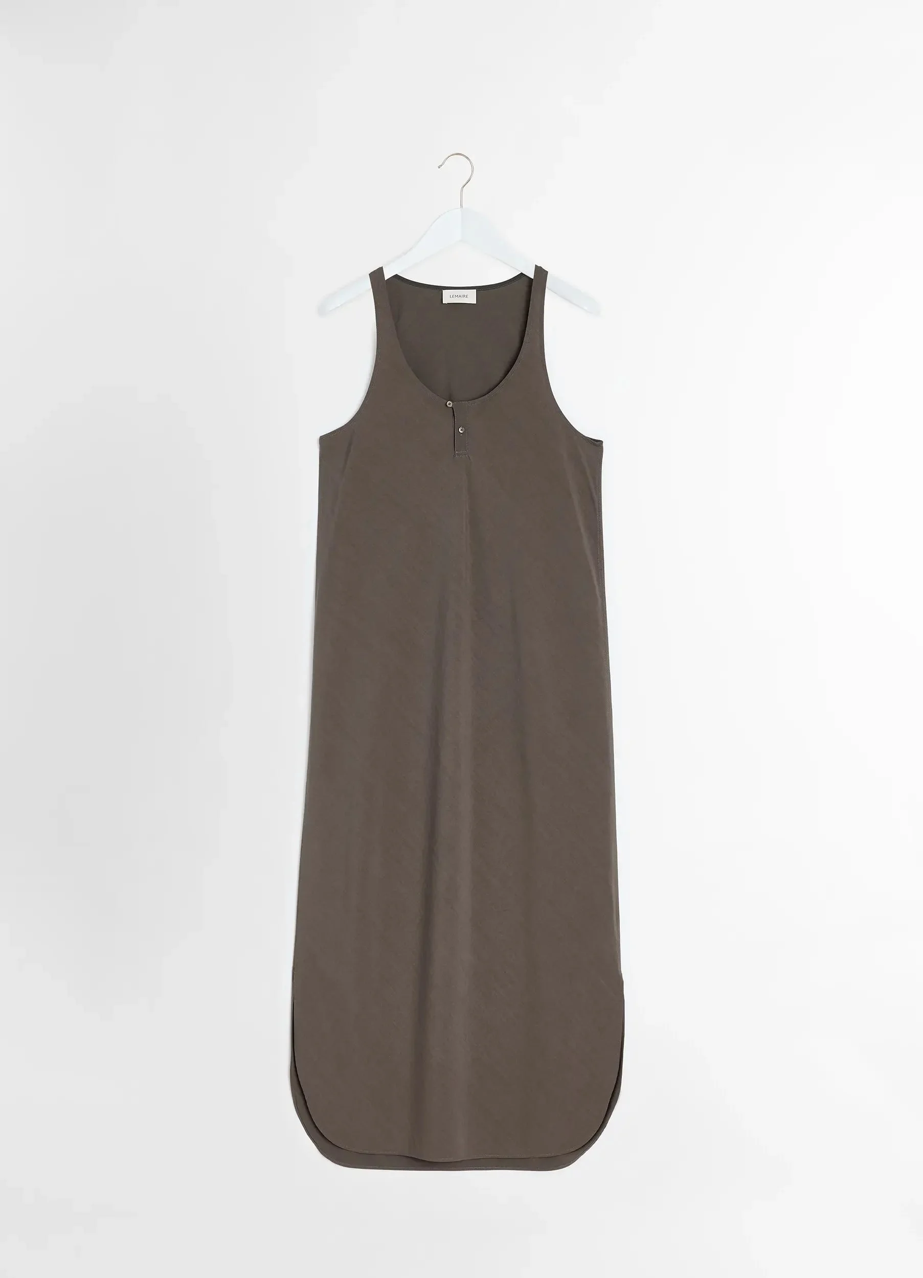 The Bias Tank Dress is crafted from technical lyocell, a lightweight yet structured material with a soft hand and a fresh feel on the skin. It features a straight cut, and its round neckline is fastened with a small placket that includes two buttons, one of which is secured with a thread loop. Tonal stitchings run along the seams, while a discreet contrasting satin lining reinforces the seams around the collar and armholes. DETAILS - Straight cut - Midi length - Round neck - Corozo buttons and thread loop closure - Rounded hem - Tonal stitching - Contrasting lining detailing Made in Portugal Style: DR1097 LF1370 The Model is 180cm / 5'11" ft and is wearing a size 36 (S). FABRICS & CARE Main Fabric : 69% Lyocell, 31% Polyamide/Nylon Second Fabric: 100% Cotton Soft wash 30° Do not bleach Do not tumble dry Cool ironing Soft dry clean Discover the traceability