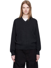 Knit wool-blend sweater. · Rib-knit V-neck, hem, and cuffs · Central garter-stitch stripe at front · Dropped shoulders Supplier color: Anthracite 50% wool, 50% acrylic. Made in Portugal 252646F100003