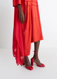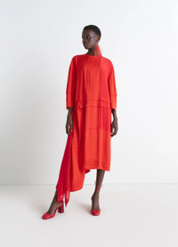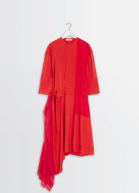 This midi dress is crafted in a patchwork of crepe de Chine, parachute silk chiffon, and a silk twill blend. Inspired by the 1920s, this piece features an asymmetrical cut with many sophisticated details, such as pleats and satin-stitch finishing. The model is 177 cm and is wearing a size 36 (S). This midi dress is crafted in a patchwork of crepe de Chine, parachute silk chiffon, and a silk twill blend. Inspired by the 1920s, this piece features an asymmetrical cut with many sophisticated details, such as pleats and satin-stitch finishing. The model is 177 cm and is wearing a size 36 (S). DETAILS Dress in patchwork of fabrics including crepe de Chine and parachute silk chiffon Oversized cut Midi-length Lightweight unlined model Crewneck Buttoned closure Three-quarter sleeves Blind tucks Panels finished with satin stitching Draped side panels Asymmetrical hem with side slit Made in Portugal Style : DR1118 LF1472 Dress in patchwork of fabrics including crepe de Chine and parachute silk chiffon Oversized cut Midi-length Lightweight unlined model Crewneck Buttoned closure Three-quarter sleeves Blind tucks Panels finished with satin stitching Draped side panels Asymmetrical hem with side slit Made in Portugal Style : DR1118 LF1472 CARE Main Material: 73% Viscose 23% Silk 4% Elasthanne Second Material: 100% Silk Third Material: 100% Silk Do not wash Do not bleach Do not tumble dry Cool ironing Soft dry clean Main Material: 73% Viscose 23% Silk 4% Elasthanne Second Material: 100% Silk Third Material: 100% Silk Do not wash Do not bleach Do not tumble dry Cool ironing Soft dry clean