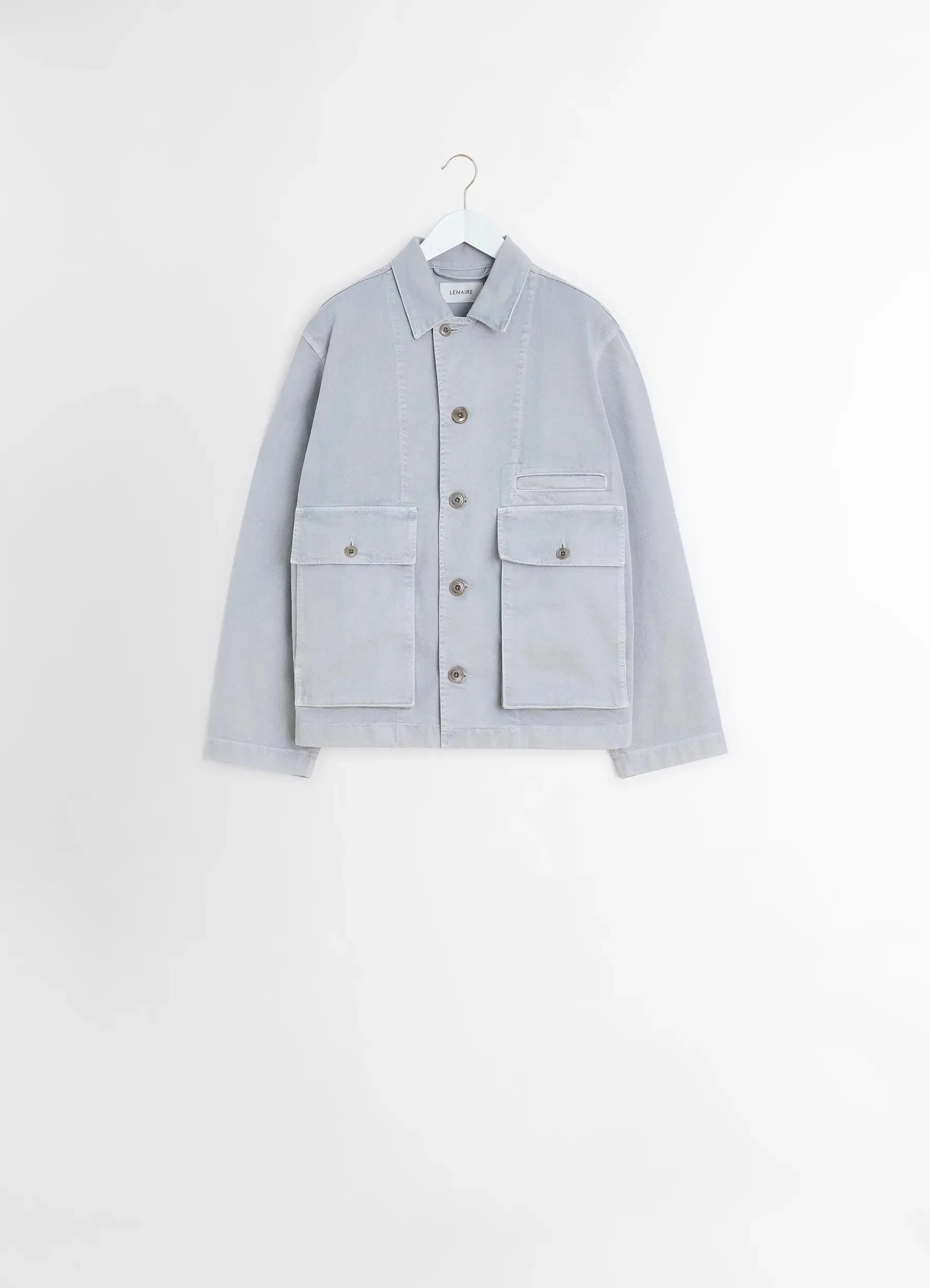 This unisex jacket is a staple of LEMAIRE’s wardrobe. It is made in garment dyed snow heavy denim, a classic LEMAIRE fabric with a thick, round hand that has been pigment dyed to evoke a snowy surface. This unlined silhouette is boxy and slightly cropped, with a square hem and a pleated back for ease of movement. Some of its workwear inspired details include layered, gusseted and hand-warming pockets, flat felled seams and adjustable cuffs. DETAILS - Boxy fit - Corozo buttons - French placket - Welt front pocket Made in Morocco Style: OW306 LD1036 FABRICS & CARE Main Fabric : 100% Cow