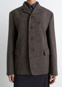 This tailored jacket is made from Harris Tweed® herringbone tweed. This woollen fabric is synonymous with craftsmanship, hard-wearing and weather resistance. This traditional piece is reinterpreted through its technical fabric lining and zipped inside pockets.The model is 177 cm tall and is wearing a size 36 (S). DETAILS Harris Tweed® herringbone tailored jacket Boxy cut Fully lined in technical fabric br>Tailored collar with buttonhole and under-button collar Structured shoulders with slim shoulder pads Chest pockets Long sleeves Side pockets with flaps Single-breasted closure Zipped inside patch pockets Made in Slovakia Style : JA1078 LF1461 FABRICS & CARE Main Material: 100% Wool Main Lining: 58% Polyamide 42% Polyester Second Lining: 100% Cotton Do not wash Do not bleach Do not tumble dry Cool ironing Soft dry clean