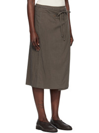 Plain-woven lyocell- and nylon-blend midi skirt. · Belt loops and self-tie belt at waistband · Zip fly · Overlay with button fastenings at front · Vent at front and back hem Supplier color: Walnut Body: 69% lyocell, 31% polyamide. Trim: 100% cotton. Made in Portugal 251646F092004