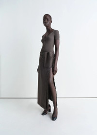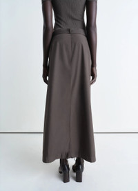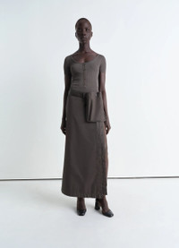 This skirt is a classic LEMAIRE wardrobe staple. It is made from lightweight cotton poplin with a fluid texture, a subtle sheen and a smooth hand, and it has been garment dyed, adding to the softness of the style. The Buttoned Long Skirt features two button plackets: one horizontal at the waist and one vertical on a side slit. Both allow its wearer to adjust the fit and play with volumes. The skirt is also fastened by a removable belt with central stitching, a loop in the back and a metal buckle. At the waist, a detachable buttoned 3D pocket can fit everyday items. DETAILS - Straight fit - Ankle length - Removable 3D pocket - Corozo buttons - Removable belt Made in Romania Style: SK1050 LF1356 The Model is 180cm / 5'11" ft and is wearing a size 36 (S). CARE Main Fabric: 100% Cotton Soft wash 30° Do not bleach Do not tumble dry Cool ironing Soft dry clean