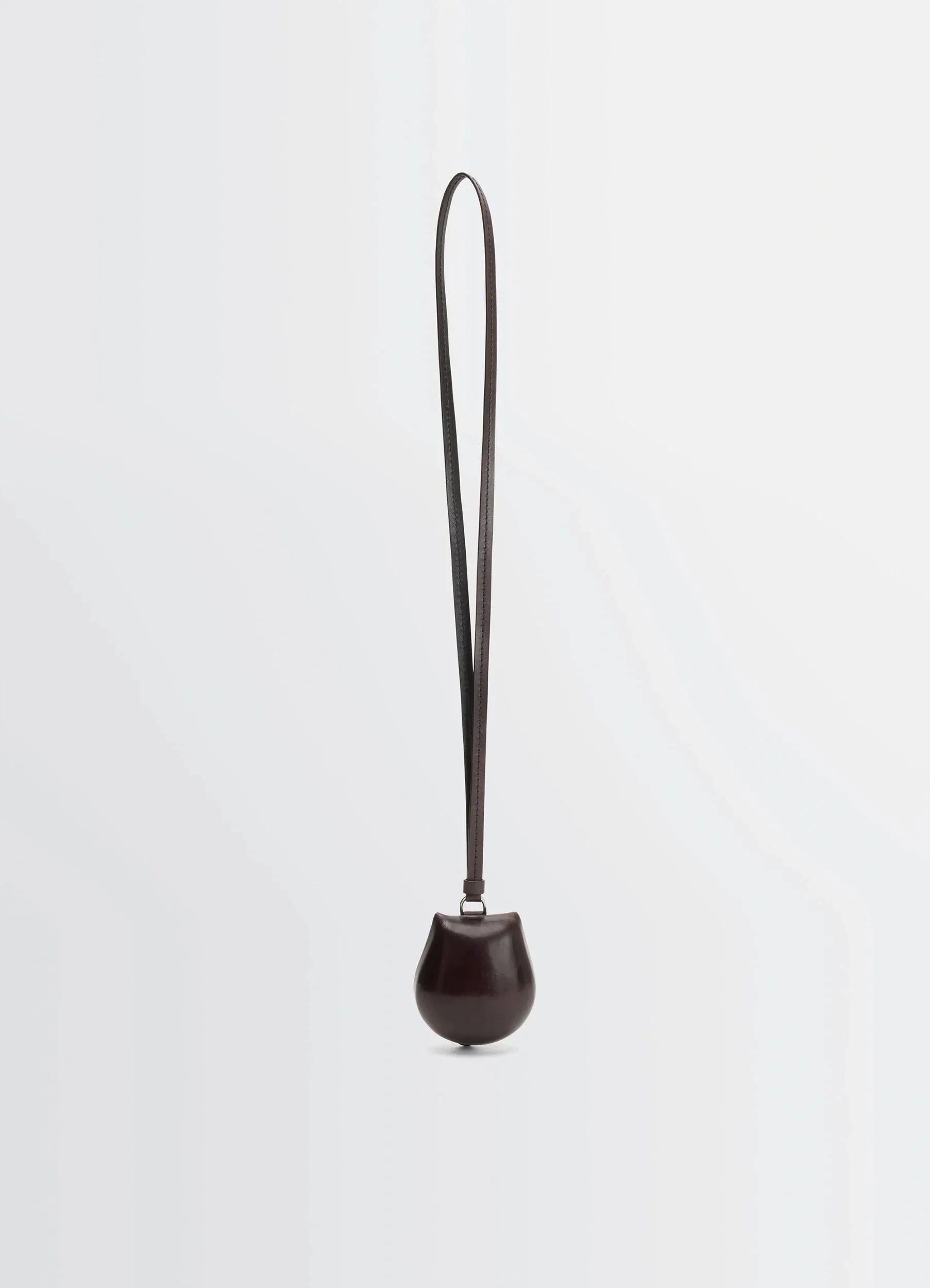 The result of a collaboration between Lemaire and artist Carlos Penafiel, this series of accessories explores the dialogue between traditional craftsmanship and contemporary art. It explores the technique of molded and patinated vegetable-tanned leather and the search for organic forms. Each piece is obtained by pressing LWG Silver-certified leather onto a dedicated structure, then shaped by craftsmen and sun-dried. Produced in a limited edition, this castanet-shaped coin purse is fashioned using an artisanal process. The result of a collaboration between Lemaire and artist Carlos Penafiel, this series of accessories explores the dialogue between traditional craftsmanship and contemporary art. It explores the technique of molded and patinated vegetable-tanned leather and the search for organic forms. Each piece is obtained by pressing LWG Silver-certified leather onto a dedicated structure, then shaped by craftsmen and sun-dried. Produced in a limited edition, this castanet-shaped coin purse is fashioned using an artisanal process. DETAILS Carlos Penafiel Castanet coin purse necklace in molded leather and patina Leather strap with ring and metal rivets Rigid castanet-shaped model Molded flap Tongue Penafiel for Lemaire inscription and serial number embossed inside Due to the nature of vegetable-tanned leather and its entirely handcrafted production, slight irregularities or natural marks may be visible. These are part of the authenticity of the material and craftsmanship, contributing to the unique character of each piece Dimensions: Made in Spain Style : SL0094 LL0165 Carlos Penafiel Castanet coin purse necklace in molded leather and patina Leather strap with ring and metal rivets Rigid castanet-shaped model Molded flap Tongue Penafiel for Lemaire inscription and serial number embossed inside Due to the nature of vegetable-tanned leather and its entirely handcrafted production, slight irregularities or natural marks may be visible. These are part of the authenticity of the material and craftsmanship, contributing to the unique character of each piece Dimensions: Made in Spain Style : SL0094 LL0165 CARE Main material: 100% cow Second material: 100% lamb Do not wash Do not bleach Do not tumble dry Do not iron Professional leather clean only Main material: 100% cow Second material: 100% lamb Do not wash Do not bleach Do not tumble dry Do not iron Professional leather clean only