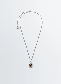 The playful Cat Eye line is enriched this season with this new jewelry proposition. This adjustable Cat Eye Rattle necklace is sculpted in brass with a brushed silver finish. It features a bean-shaped pendant encrusted with a surrealist cat eye and will add light and intrigue to any look. DETAILS - Silver finish - Cat eye pendant - Chain with adjustable length Made in Italy Style: JW0119 LO036 FABRICS & CARE Main Material: 100% Brass Second Material: 100% Glass Fiber Be careful not to expose your jewellery to perfumes, detergents, and remove it when exposed to water. To clean and shine them, you can use a soft cloth.