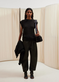This sweater is a new addition to LEMAIRE’s knitwear family. It is made of chunky cotton using different knitting technics which give a rich texture as well as a soft, warm hand to the garment. An open crew neck and rib finishing at the collar and hem highlight its fitted silhouette. DETAILS Relaxed fit Rib collar and hem Made in Italy Style: TO1212 LK1023 FABRICS & CARE Main Material: 100% Cotton Do not wash Do not bleach Do not tumble dry Cool ironing Soft dry clean