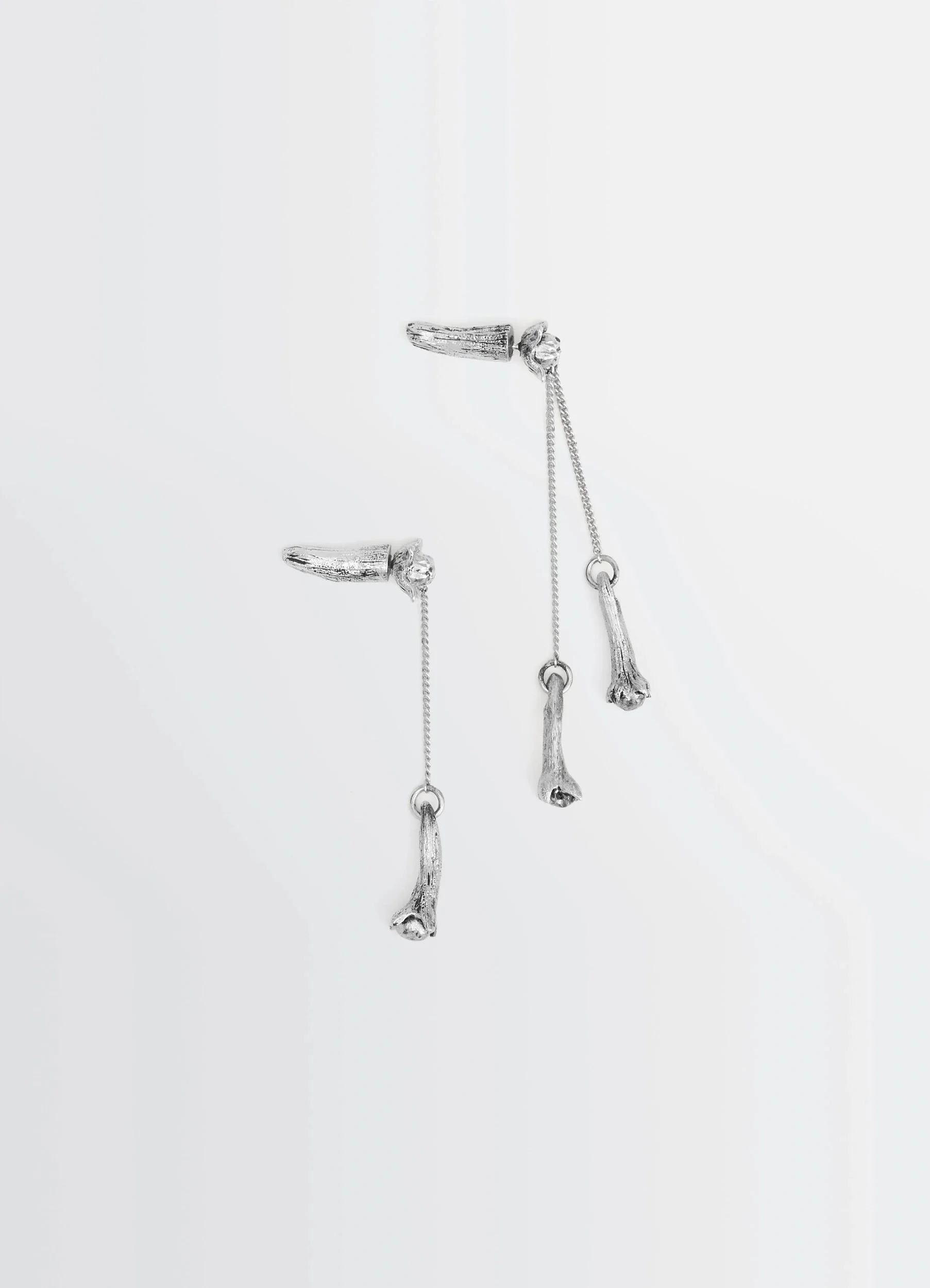 Inspired by the delicate shape of cloves, this pair of dangling earrings is crafted from hammered and patinated brass, a unique finish that is both shiny and aged in effect. This jewelry, with its raw, handcrafted touch, is equally suited to everyday wear or an elegant evening alternative. DETAILS Clove dangling earrings in hammered and patinated silver-plated brass Dangling clove shape Thin chains Stem and clove-shaped clasp Made in Portugal Style: JW0130 LO036 FABRICS & CARE Main Fabric: 100% Hammered, patinated brass Be careful not to expose your jewellery to perfumes, detergents, and remove it when exposed to water. To clean and shine them, you can use a soft cloth.