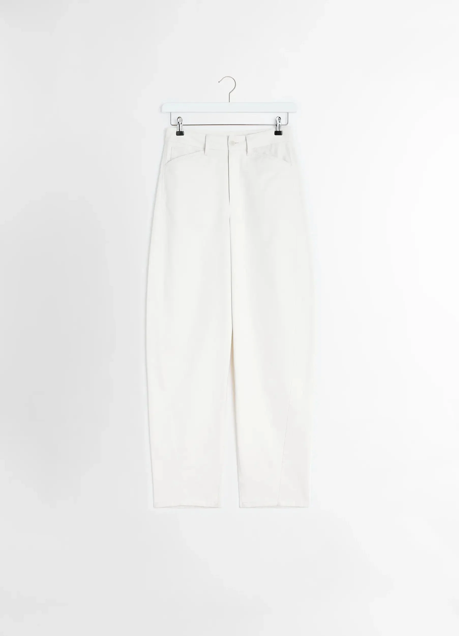 These Five Pocket Twisted Pants are a new addition to the LEMAIRE twisted leg pants family, featuring a straighter leg and our signature twisted seam. They are crafted made in heavy cotton drill, a resistent material with a textured hand which helps the garment keep its structure. Designed with five pocket details, this style bridges sleek elegance and utilitarian comfort. A corozo button, a zip fly and belt loops complete the look, offering a versatile option for the every day wardrobe. DETAILS - Straight fit - Tonal stitching - Twisted seam - High-rise - Corozo button - Zip fly - Side-seam pockets - Two back patch pockets Made in Morocco Style: PA1181 LF1365 FABRICS & CARE Main Fabric: 100% Cotton Main Lining: 100% Cotton Soft wash 30° Do not bleach Do not tumble dry Cool ironing Soft dry clean