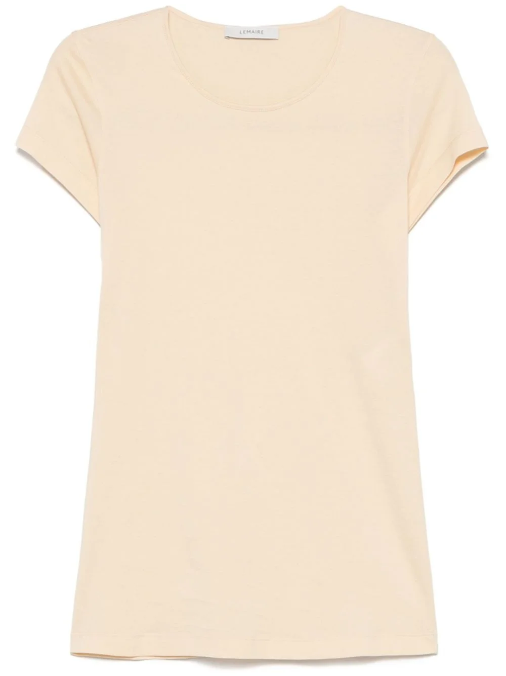 cotton T-shirt Highlights - Pastel yellow - Crew neck - Short sleeves Imported Composition Cotton 100% SIZE & FIT Model measurements Height 5 ft 10 in(1.78 m) Bust/Chest 33.46 in(85 cm) Hips 36.22 in(92 cm) Waist 23.22 in(59 cm) FittingInformation Designed for a slim fit that sits just away from the body offering a close yet comfortable fit Made from a midweight non-stretch fabric, this piece offers minimal elasticity when worn