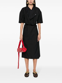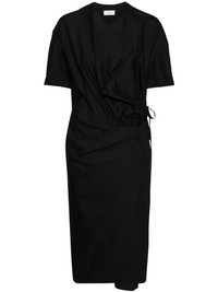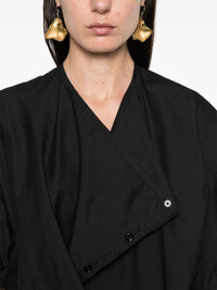 cowl-neck midi dress Highlights - Black - Cotton-silk blend - Poplin texture - Wrap design - Cowl neck - Short sleeves - Turn-up cuffs - Belt loops - Belted waist - Unlined - Straight hem - Front button fastening - Self-tie fastening Imported Composition Cotton 80%, Silk 20% SIZE & FIT Model measurements Height 5 ft 10 in(1.78 m) Bust/Chest 33.07 in(84 cm) Hips 36.22 in(92 cm) Waist 24.01 in(61 cm) FittingInformation Designed for a relaxed fit, this piece allows for comfort and movement when worn The adjustable tie waist gives a more adaptable and personalised fit Made from a midweight non-stretch fabric This piece fits true to size – take your usual size