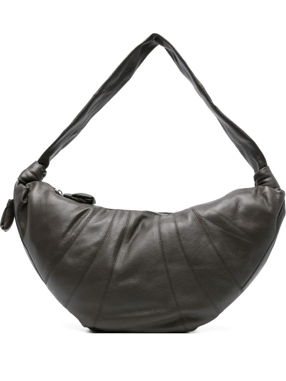 Croissant knotted leather shoulder bag Highlights - Dark grey - Calf leather - Knotted top handle - Crescent shape - Zip fastening - Pleated detailing Made in Italy Composition Outer: Calf Leather 100% SIZE & FIT Model measurements Height 5 ft 10 in(1.77 m) Bust/Chest 33.07 in(84 cm) Hips 37 in(94 cm) Waist 24.8 in(63 cm) Measurement DEPTH 3.93 in(10 cm) HEIGHT 9.84 in(25 cm) WIDTH 21.65 in(55 cm)