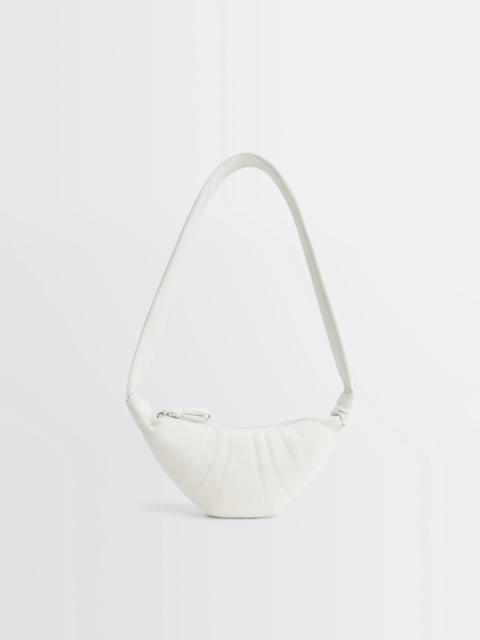 The Croissant line is emblematic of the Lemaire wardrobe. This versatile, supple bag features a curve inspired by the Viennoiserie of the same name, created by an assembly of topstitched panels and knotted elements. This small bag is crafted in grained leather, a supple yet resistant material characterized by its textured look. The Croissant line is emblematic of the Lemaire wardrobe. This versatile, supple bag features a curve inspired by the Viennoiserie of the same name, created by an assembly of topstitched panels and knotted elements. This small bag is crafted in grained leather, a supple yet resistant material characterized by its textured look. DETAILS - This bag can be worn on the shoulder or cross-body - Height of the shoulder strap: 43cm / 17in - Length: 35cm / 14in - Width: 16cm / 6in - Depth: 5cm / 2in - Lining in cotton canvas - Metal Looped zip puller - Small interior patch pocket (can contain cards, small keys or a public transportation pass) - Main compartment (can contain smartphone, card holder, Airpods Pro 2 case and wallet) - Side knot finishings - Embossed logo inside Made in Spain Style: BG0003 LL0018 - This bag can be worn on the shoulder or cross-body - Height of the shoulder strap: 43cm / 17in - Length: 35cm / 14in - Width: 16cm / 6in - Depth: 5cm / 2in - Lining in cotton canvas - Metal Looped zip puller - Small interior patch pocket (can contain cards, small keys or a public transportation pass) - Main compartment (can contain smartphone, card holder, Airpods Pro 2 case and wallet) - Side knot finishings - Embossed logo inside Made in Spain Style: BG0003 LL0018 CARE Main Material : 100% Cow Main Lining : 100% Cotton Do not wash Do not bleach Do not tumble dry Do not iron Professional leather clean only Main Material : 100% Cow Main Lining : 100% Cotton Do not wash Do not bleach Do not tumble dry Do not iron Professional leather clean only