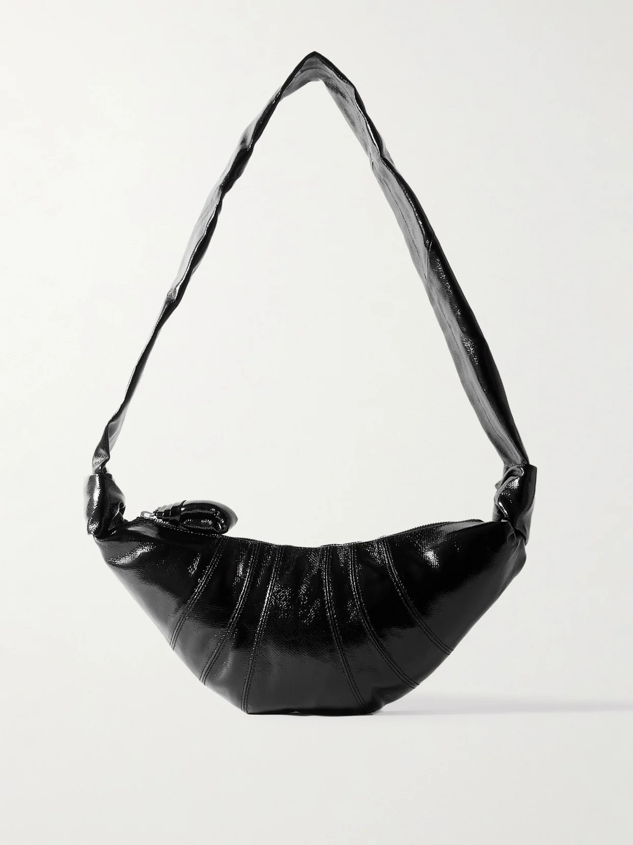 LEMAIRE's bag is designed in a 'Croissant'-inspired silhouette - it even has topstitched panels that nod to the French pastry's flaky layers. Made in Spain from glossy black coated-canvas, it has a generous top handle with sleek knots at each side. Stow your phone, wallet and compact in the small canvas interior.