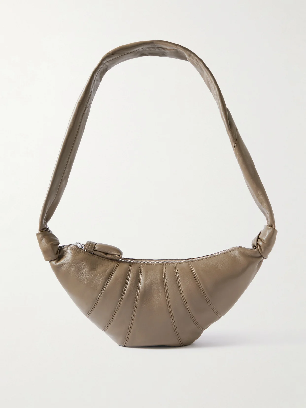 LEMAIRE's bag is designed in a 'Croissant'-inspired silhouette - it even has topstitched panels that nod to the French pastry's flaky layers. Made in Spain from glossy army-green leather, it has a generous top handle with sleek knots at each side. Stow your phone, wallet and compact in the small canvas interior. Lower-Impact Materials. This product is made using at least 50% lower-impact materials or ingredients. Find out more about our NET SUSTAIN criteria here.