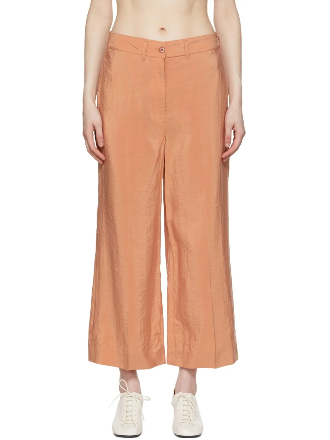 Silk and nylon-blend crepe trousers. · Belt loops · Zip-fly · Central crease at front legs · Three-pocket styling · Cropped cuffs Supplier color: Coral 76% silk, 24% polyamide. Made in Bulgaria 221646F088007