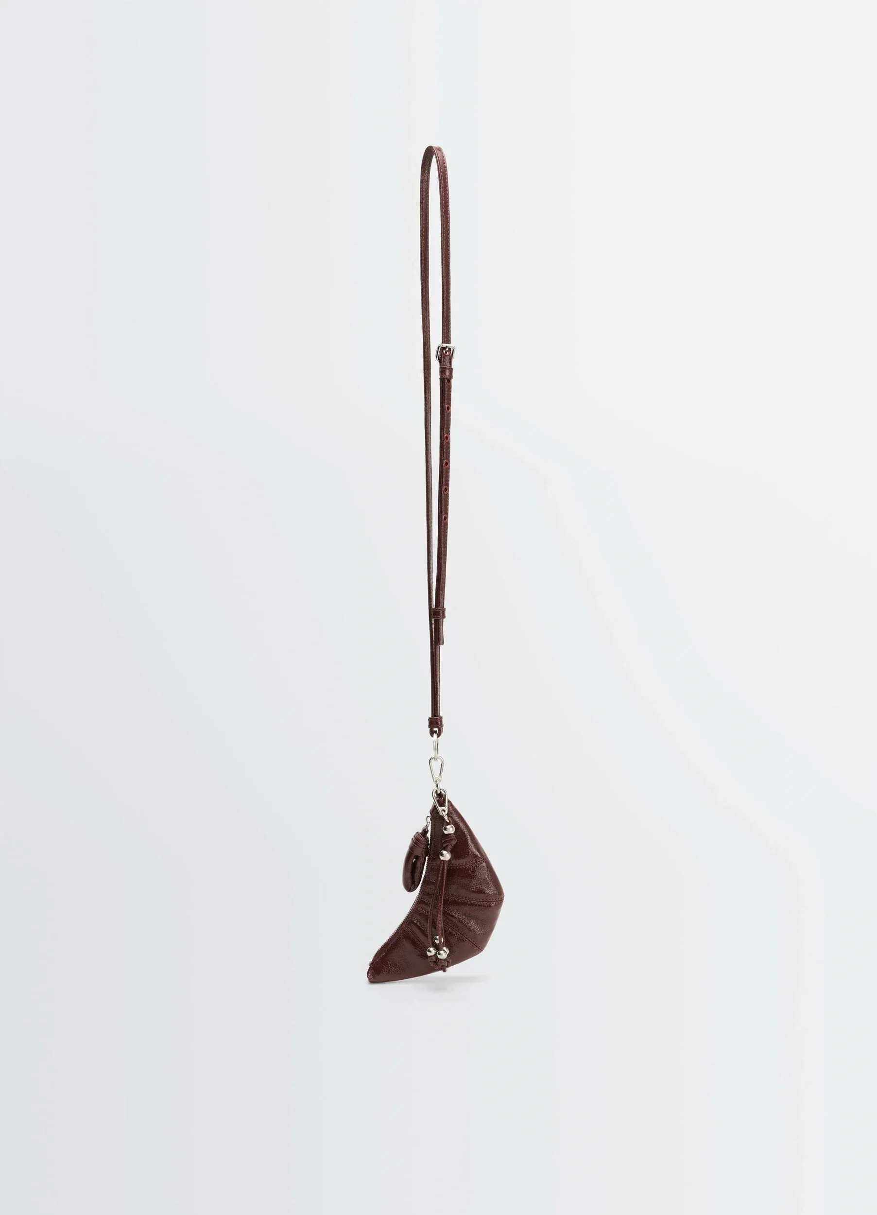 Inspired by the iconic Croissant line, the crossbody coin purse introduces a new silhouette with versatile wearability. Its folded half-moon appearance is achieved through an assembly of topstitched panels. To celebrate Valentine's Day, Lemaire revisits the infinity knot - a symbol of prosperity, happiness and longevity - in a charm version that accompanies this purse made from coated cotton canvas with a textured, shiny look. Inspired by the iconic Croissant line, the crossbody coin purse introduces a new silhouette with versatile wearability. Its folded half-moon appearance is achieved through an assembly of topstitched panels. To celebrate Valentine's Day, Lemaire revisits the infinity knot - a symbol of prosperity, happiness and longevity - in a charm version that accompanies this purse made from coated cotton canvas with a textured, shiny look. DETAILS Crossbody Croissant coin purse in coated cotton Adjustable and removable strap with buckle and ring Soft model with tone-on-tone topstitched panels Ring and metal engraved carabiner’s clasp Removable charm in knotted coated cotton and metal beads Zipper closure with quilted leather pull tab Cotton canvas lining Lemaire embossed interior leather label Silver-plated metalwork Dimensions: Length: 18 cm Height: 9 cm Depth: 3 cm Arrow height: 50 cm Strap length: 105 cm Made in Italy Style : SL0054 LL0018 Crossbody Croissant coin purse in coated cotton Adjustable and removable strap with buckle and ring Soft model with tone-on-tone topstitched panels Ring and metal engraved carabiner’s clasp Removable charm in knotted coated cotton and metal beads Zipper closure with quilted leather pull tab Cotton canvas lining Lemaire embossed interior leather label Silver-plated metalwork Dimensions: Length: 18 cm Height: 9 cm Depth: 3 cm Arrow height: 50 cm Strap length: 105 cm Made in Italy Style : SL0054 LL0018 CARE Main material: 100% cotton Main lining: 100% cotton Soft wash 30° Do not bleach Do not tumble dry Cool ironing Soft dry clean Main material: 100% cotton Main lining: 100% cotton Soft wash 30° Do not bleach Do not tumble dry Cool ironing Soft dry clean
