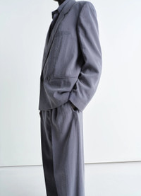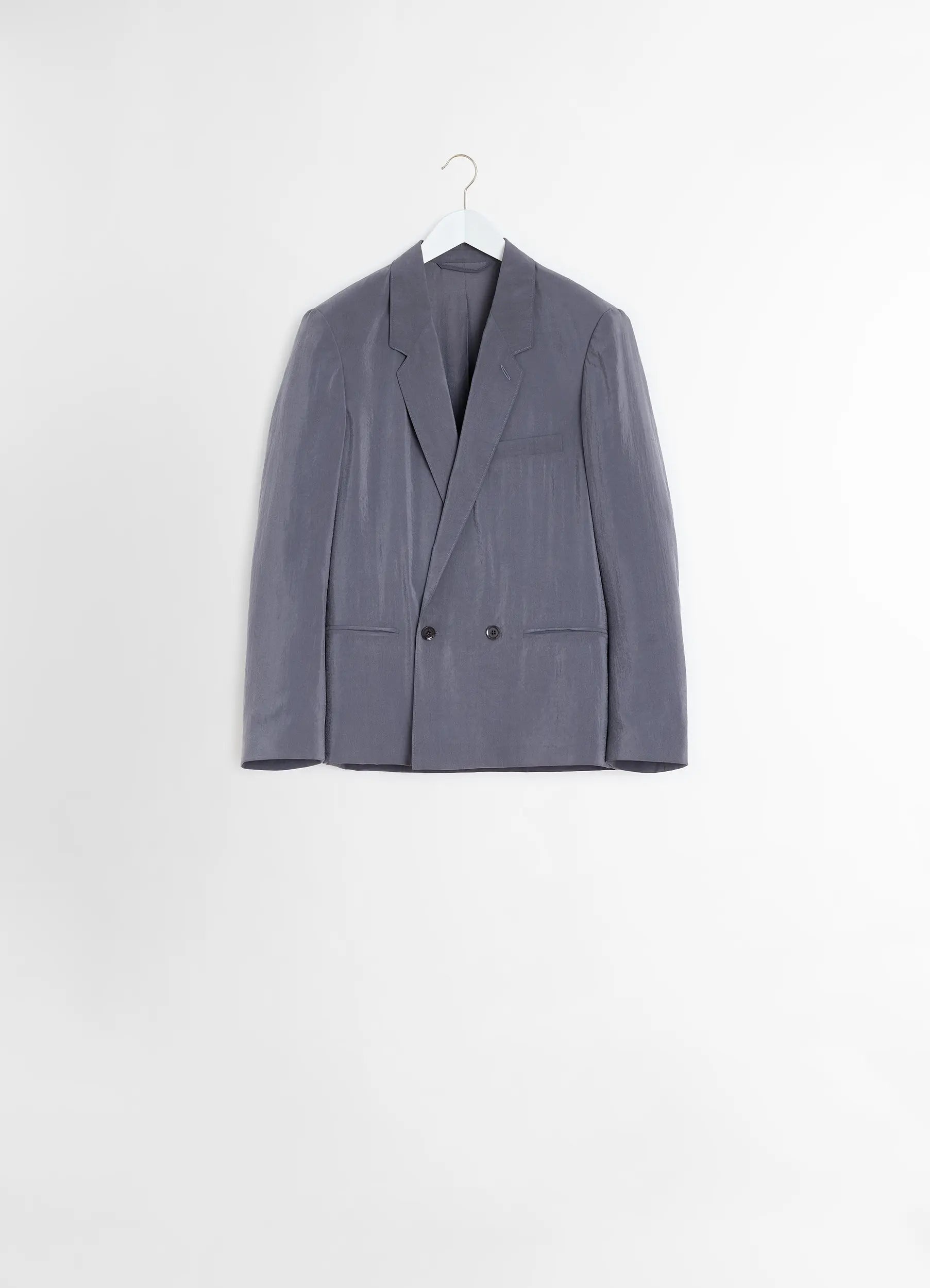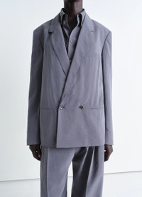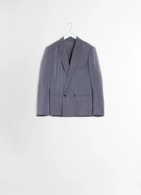 This jacket showcases LEMAIRE’s savoir-faire in soft tailoring. The Double-Breasted Soft Tailored Jacket is crafted from dry silk, a signature LEMAIRE fabric with a soft and textured hand with a satin-like sheen. It features a relaxed fit, convertible notched lapels, two welt pockets on the front, and an interior pocket. This relaxed style is fully lined and fastens with two corozo buttons. DETAILS - Relaxed fit - Padded shoulders - Convertible lapel - Fully lined - Corozo buttons - Interior pocket Made in Slovakia Style: JA1077 LF1308 FABRICS & CARE Main Fabric: 76% Silk, 24% Polyamide/Nylon Main Lining: 51% Cotton, 49% Viscose Do not wash Do not bleach Do not tumble dry Cool ironing Soft dry clean