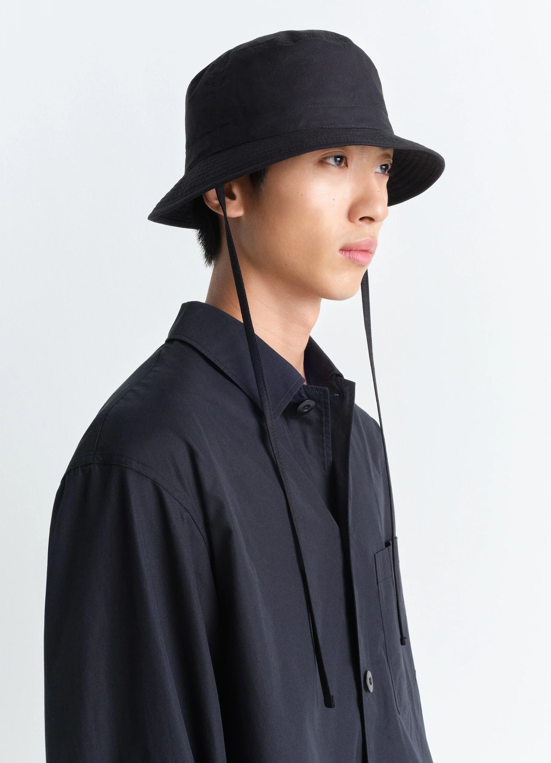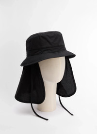 This accessory is part of a new family of hats designed to highlight the LEMAIRE silhouette. This bucket hat is crafted in a ventile cotton that is both light and durable. Two straps of the same fabric can be tied around the neck for a tighter fit. A water-repellent finish and a removable neck protector help protect it from the elements. DETAILS - Water repellent - Removable back neck protection - Unlined Made in Bulgaria Style: AC1109 LF1371 FABRICS & CARE Main Fabric: 100% Cotton Soft wash 30° Do not bleach Do not tumble dry Cool ironing Do not dry clean Dry flat
