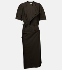 Upgrade your wardrobe with distinctive styles from Lemaire, including this shirt dress. Made from smooth cotton and silk and artfully draped, the design is finished with button fastenings and a slim self-tie belt. Product Details - Material: 80% cotton, 20% silk - Care instructions: hand wash - Made in Portugal - Designer color name: Dark Espresso - Item color: brown - Closure: partially buttoned front, self-ties - Item number: P01068609 Size & Fit - True to size - Cinched waist - Non-stretchy fabric - The model seen in the picture is 178cm-5'10" and wearing a size FR 36