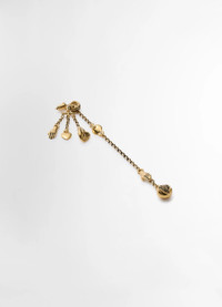 The Estampe earrings are made of brass with an old gold finish. Delicate figurative charms representing a mask, hands and a heart are articulated on fine, openplated chains of various lengths. DETAILS Sold as a pair Cup post back closure Height 9 cm Made in France Style : JW0016 LO036 FABRICS & CARE Main Material: 100% Brass Be careful not to expose your jewellery to perfumes, detergents, and remove it when exposed to water. To clean and shine them, you can use a soft cloth.
