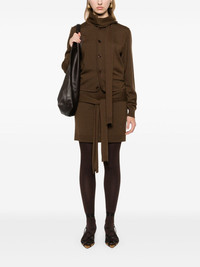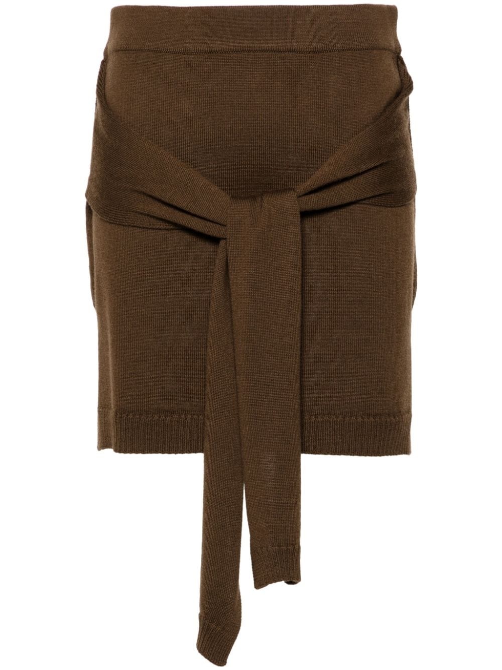 fine-knit mini skirt Highlights - Caramel brown - Wool blend - Fine knit - Layered details - Ribbed hem - Front tie fastening Imported Composition Wool 50%, Acrylic 50% SIZE & FIT Model measurements Height 5 ft 9 in(1.75 m) Bust/Chest 30.7 in(78 cm) Hips 34.64 in(88 cm) Waist 23.22 in(59 cm) FittingInformation This mini-length skirt is intended to be worn high on the waist The elasticated waist allows for a comfortable fit Made with a lightweight knit, this piece offers some stretch This piece fits true to size – take your usual size
