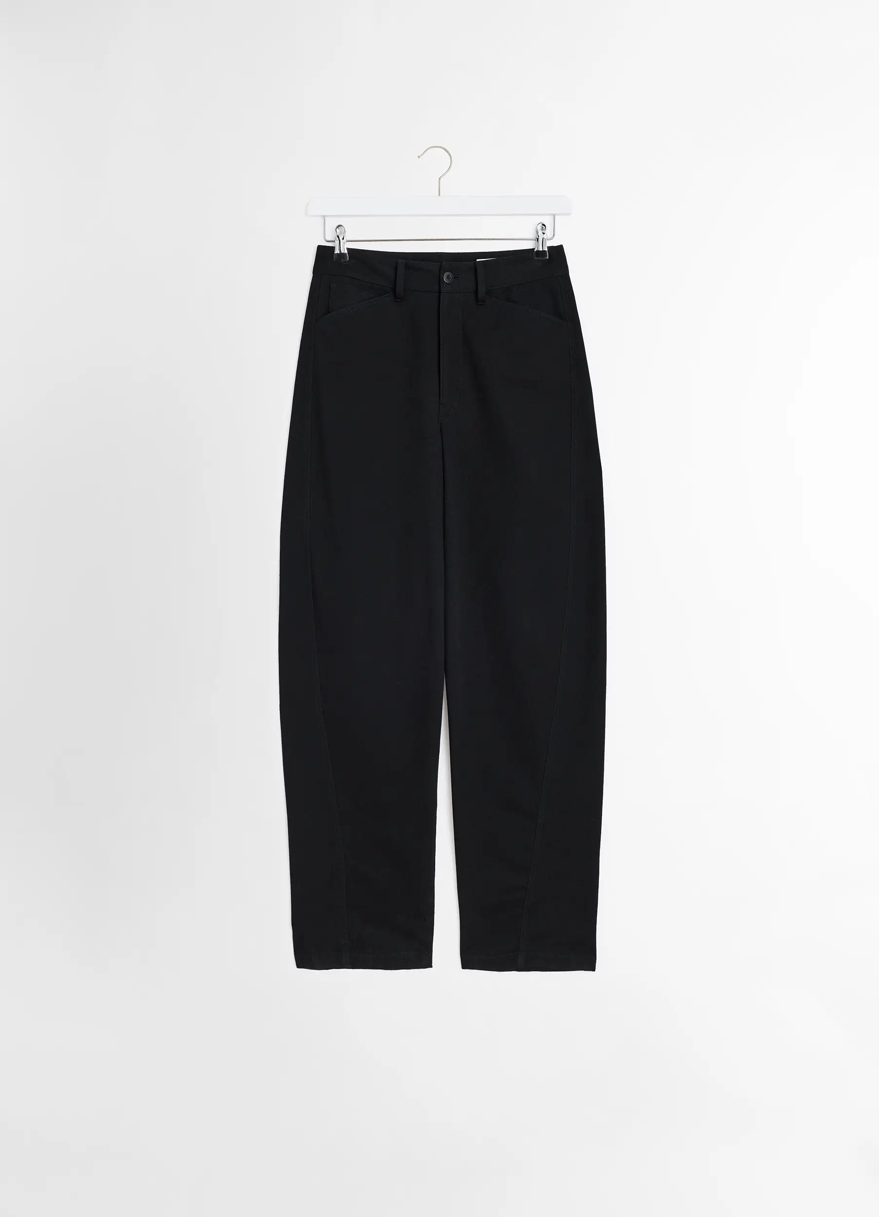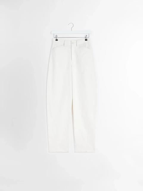 These Five Pocket Twisted Pants are a new addition to the LEMAIRE twisted leg pants family, featuring a straighter leg and our signature twisted seam. They are crafted made in heavy cotton drill, a resistent material with a textured hand which helps the garment keep its structure. Designed with five pocket details, this style bridges sleek elegance and utilitarian comfort. A corozo button, a zip fly and belt loops complete the look, offering a versatile option for the every day wardrobe. DETAILS - Straight fit - Tonal stitching - Twisted seam - High-rise - Corozo button - Zip fly - Side-seam pockets - Two back patch pockets Made in Morocco Style: PA1181 LF1365 FABRICS & CARE Main Fabric: 100% Cotton Main Lining: 100% Cotton Soft wash 30° Do not bleach Do not tumble dry Cool ironing Soft dry clean
