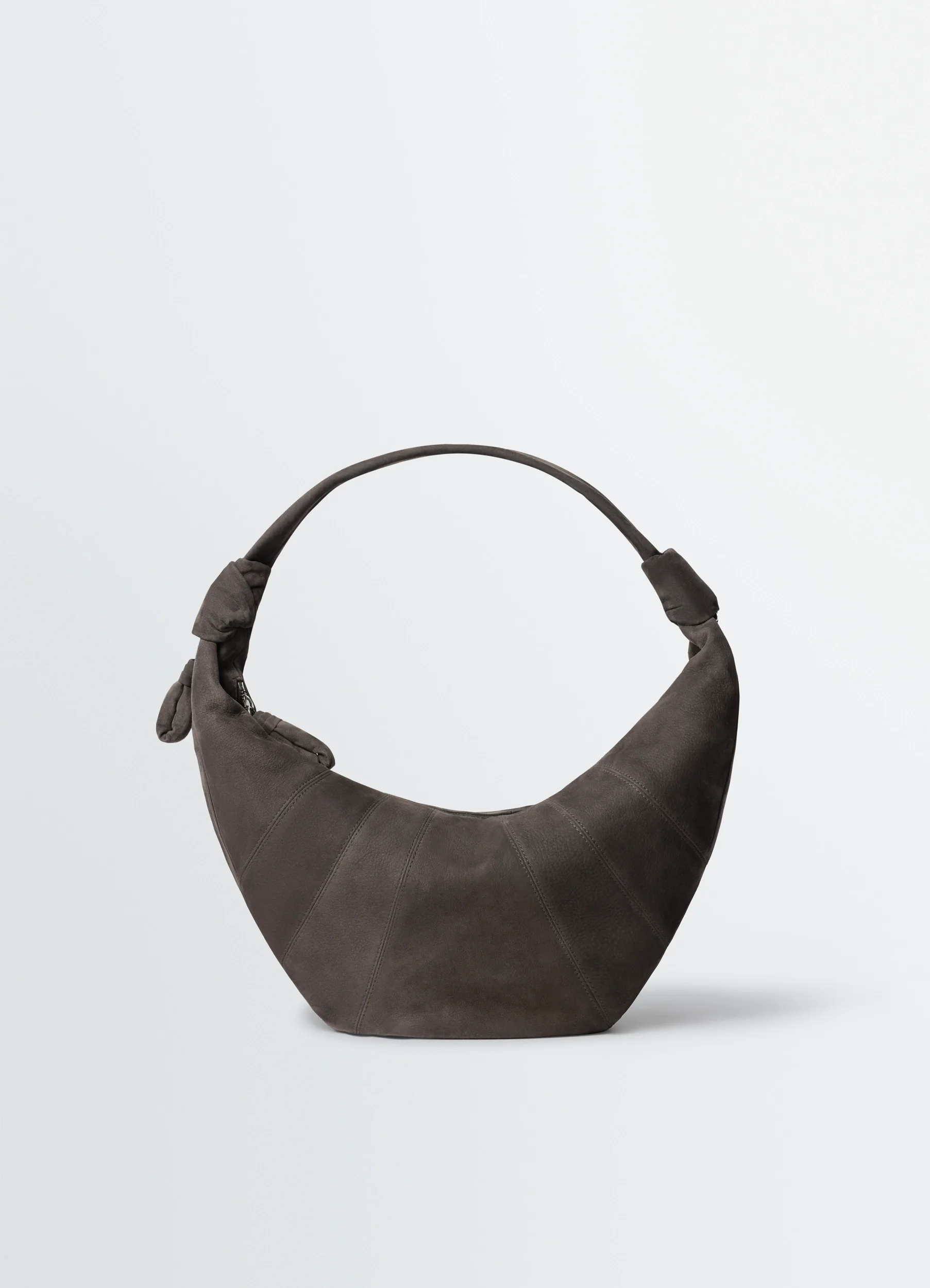 Inspired by the emblematic Croissant line, the Fortune Croissant bag introduces a new silhouette worn by hand or on the shoulder. Its folded half-moon aspect is obtained through an assembly of topstitched cuts, enriched by characteristic elements of the line and a small D-ring for accessorising. This model is crafted in alpaca nubuck leather from a certified tannery, a soft material with a smooth yet textured hand. Inspired by the emblematic Croissant line, the Fortune Croissant bag introduces a new silhouette worn by hand or on the shoulder. Its folded half-moon aspect is obtained through an assembly of topstitched cuts, enriched by characteristic elements of the line and a small D-ring for accessorising. This model is crafted in alpaca nubuck leather from a certified tannery, a soft material with a smooth yet textured hand. DETAILS Fortune Croissant bag in alpaca nubuck leather Soft model with topstitched panels Hand and shoulder carry Handle with knotted details Side zipped pocket with quilted puller Zip fastening with quilted puller Cotton canvas lining and interior card pocket Inner Lemaire-embossed leather label Small D-ring for customisation and accessories Dimensions: Length: 42 cm Height: 23 cm Depth: 7 cm Handle drop: 42 cm Strap length: 96 cm Made in Spain Style: BG0071 LL0189 Fortune Croissant bag in alpaca nubuck leather Soft model with topstitched panels Hand and shoulder carry Handle with knotted details Side zipped pocket with quilted puller Zip fastening with quilted puller Cotton canvas lining and interior card pocket Inner Lemaire-embossed leather label Small D-ring for customisation and accessories Dimensions: Length: 42 cm Height: 23 cm Depth: 7 cm Handle drop: 42 cm Strap length: 96 cm Made in Spain Style: BG0071 LL0189 CARE Main Material: 100% veal - calf main lining: 100% coton Do not wash Do not bleach Do not tumble dry Do not iron Professional leather clean only Main Material: 100% veal - calf main lining: 100% coton Do not wash Do not bleach Do not tumble dry Do not iron Professional leather clean only