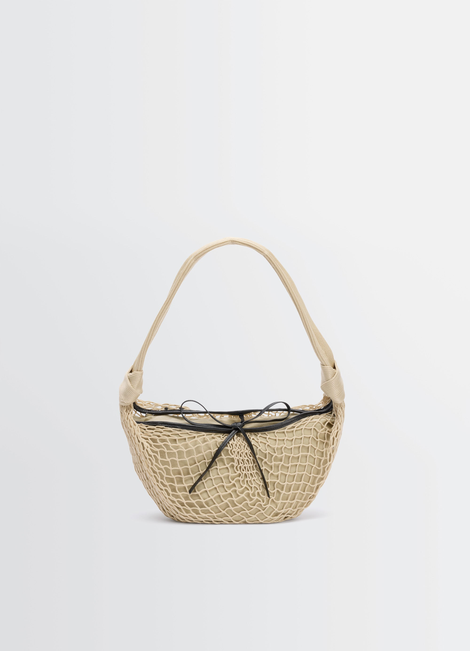 The Fortune Croissant Filt marks the second collaboration between LEMAIRE and heritage company FILT, France’s oldest manufacturer of net shopping bags. The venture reinforces the brand's commitment to nurture traditional craftsmanship while pushing house signatures into new territories. Entirely made in France, this unisex style is a 2-in-1 interpretation of the iconic Fortune Croissant bag. One can choose to wear the bag either with or without the inside pouch, housed in the net bag via a soft Nappa leather drawstring. The removable nylon compartment can morph into its own separate entity: a mini handbag made from LEMAIRE's signature water-repelling nylon, closing with a shiny metal and leather 2-snap closure system. DETAILS - This bag can be worn on the shoulder, cross-body or by hand - Height of the main strap: 42cm / 16,5in - Length: 45cm / 18,9in - Width: 1cm / 0,4in - Depth: 27cm / 10,6in - Polyester net shell - Nappa leather drawstring closure - Removable inside pouch: two bags in one - Inside zip pocket - Water repellent nylon - Nappa leather drawstring - 2-snap metal closure Made in France Style: BG0131 TP0006 FABRICS & CARE Main Fabric: 100% Polyester Main Lining: 100% Polyamide/Nylon Third Fabric: 100% Lamb Do not wash Do not bleach Do not tumble dry Do not iron Professional clean only