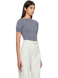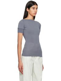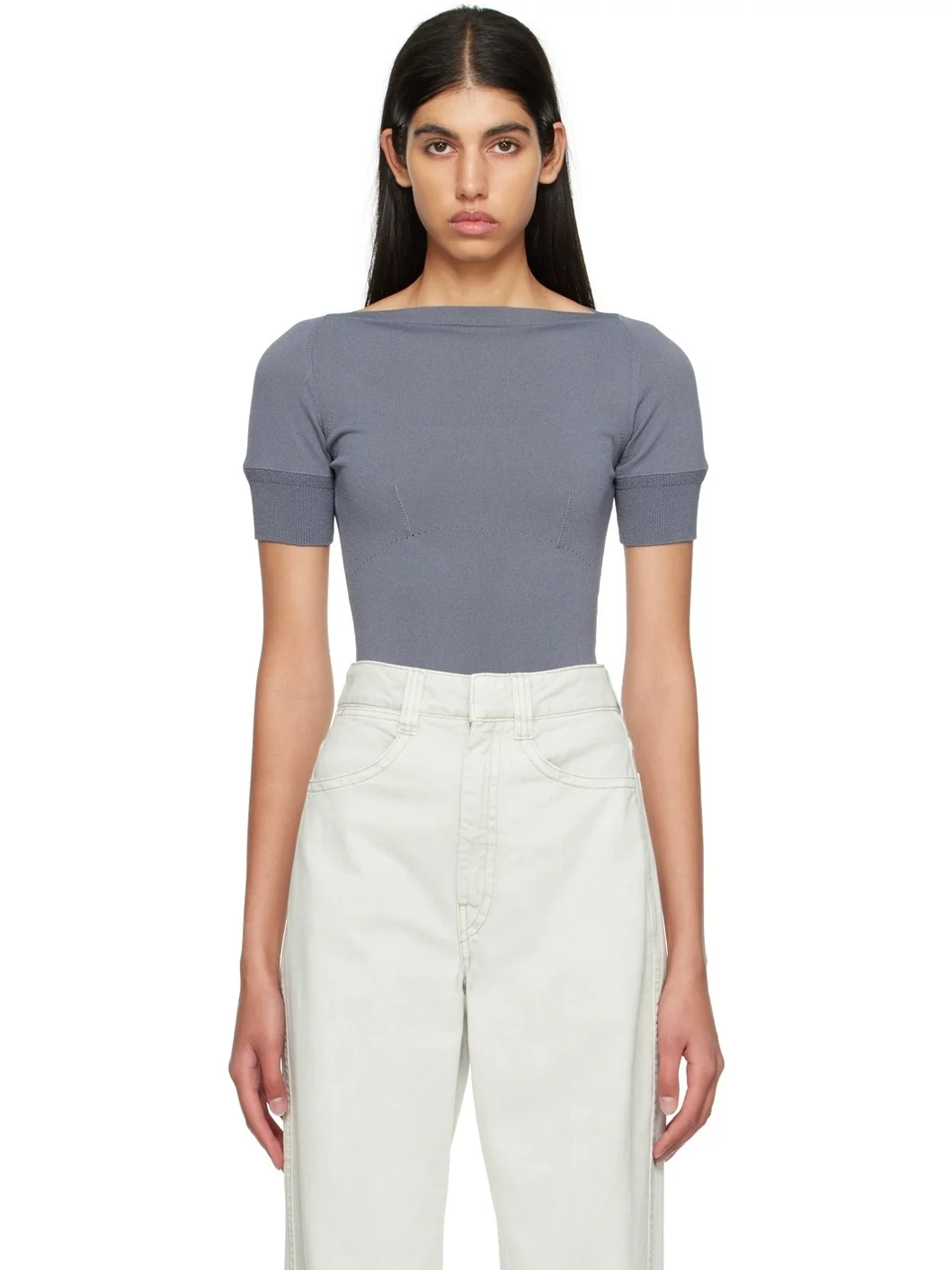 Knit viscose- and nylon-blend T-shirt. · Rib knit boat neck, hem, and cuffs · Pointelle detailing and darts at chest Supplier color: Aluminium