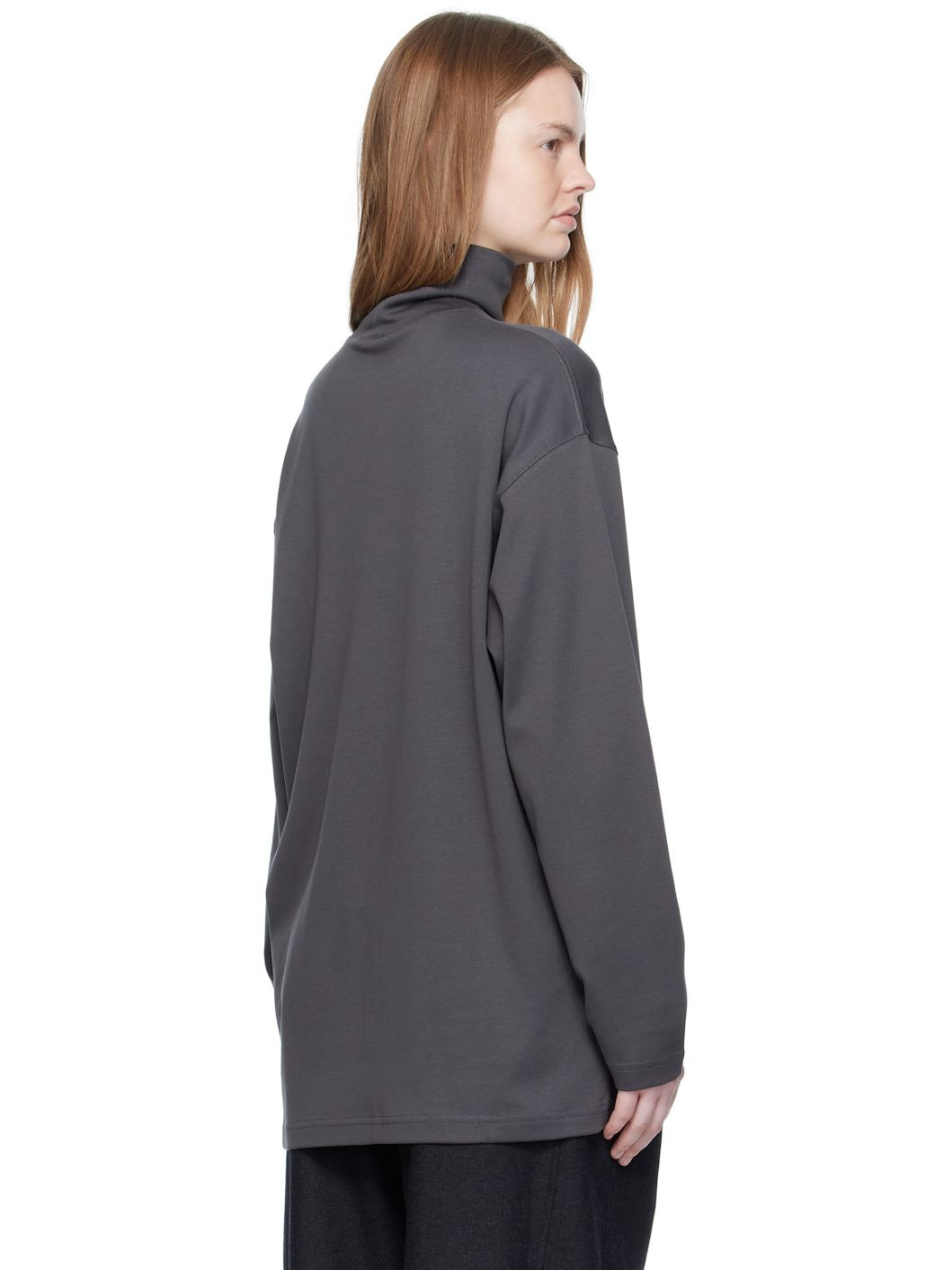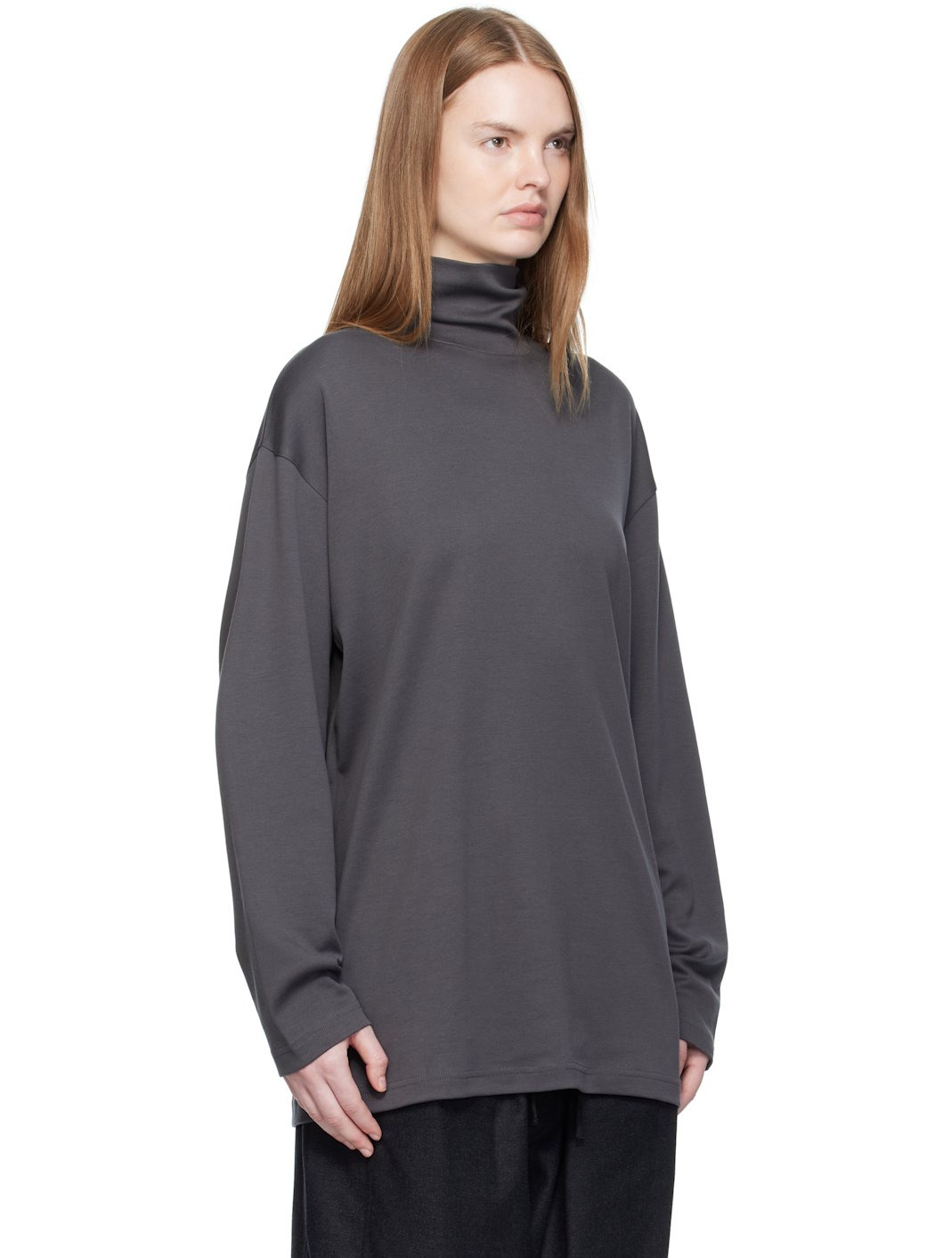 Cotton- and silk-blend interlock jersey T-shirt. · Mock neck · Dropped shoulders Supplier color: Carbon grey 80% cotton, 20% silk. Made in Portugal 252646F099002