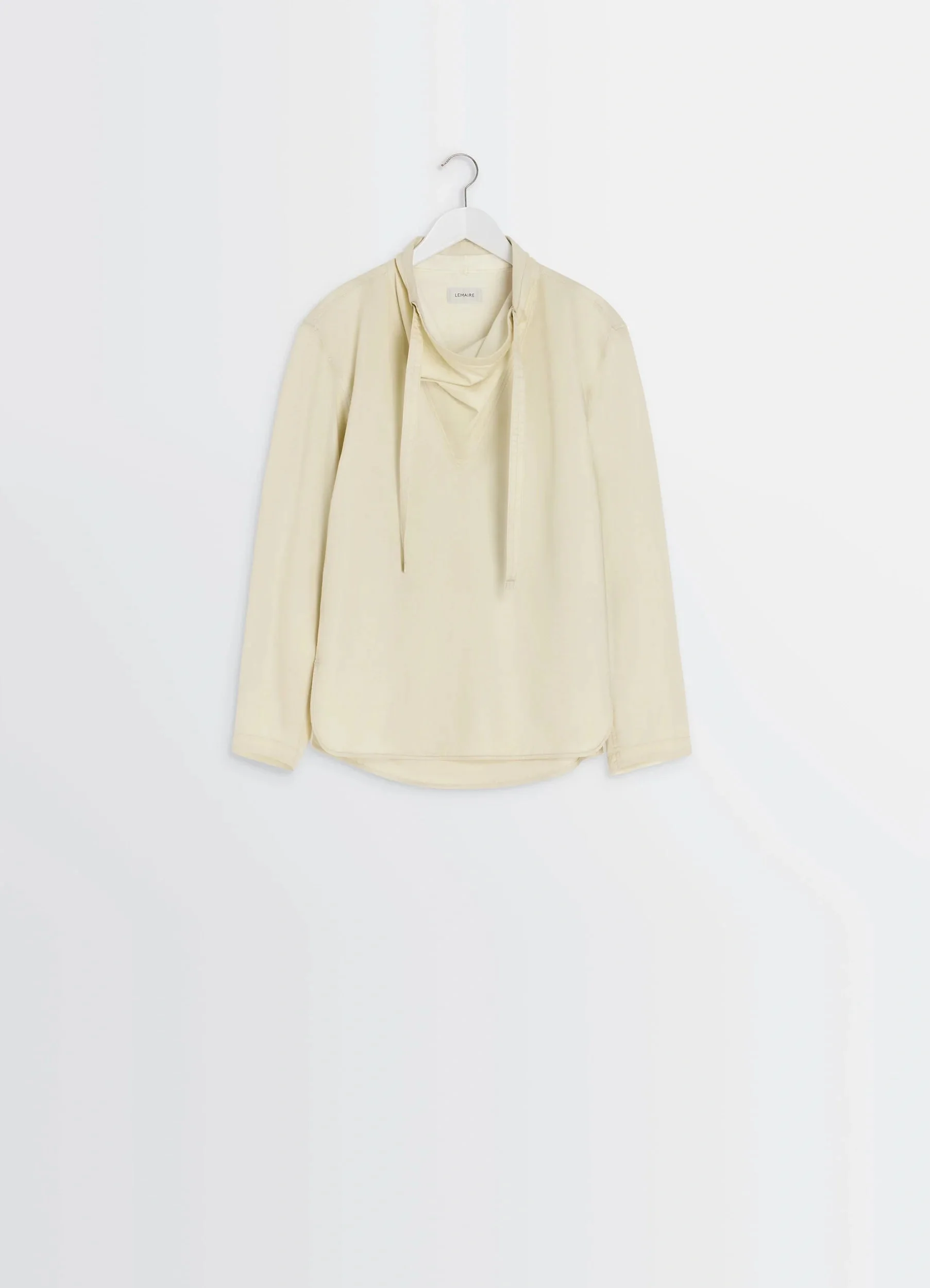 This vareuse reflects Lemaire's love for workwear and archetypal pieces. This emblematic piece is reinterpreted here in a lightweight cotton whose satin finish will develop a patina over time. The model is 177 cm and is wearing a size 36 (S). This vareuse reflects Lemaire's love for workwear and archetypal pieces. This emblematic piece is reinterpreted here in a lightweight cotton whose satin finish will develop a patina over time. The model is 177 cm and is wearing a size 36 (S). DETAILS Vareuse in lightweight cotton satin Straight cut High neck with drawcord Long sleeves Straight buttoned cuffs Lacquered buttons Collar and yoke lined in cotton flannel Made in Romania Style : TO1396 LF1207 Vareuse in lightweight cotton satin Straight cut High neck with drawcord Long sleeves Straight buttoned cuffs Lacquered buttons Collar and yoke lined in cotton flannel Made in Romania Style : TO1396 LF1207 CARE Main Material: 100% Cotton Second Material: 100% Cotton Soft wash 30° Do not bleach Do not tumble dry Cool ironing Soft dry clean Main Material: 100% Cotton Second Material: 100% Cotton Soft wash 30° Do not bleach Do not tumble dry Cool ironing Soft dry clean