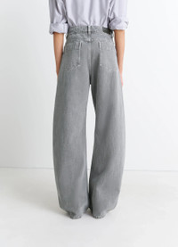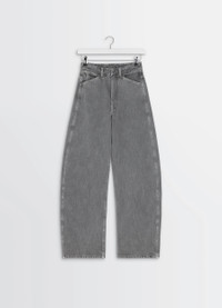 These high-waisted pants with their rounded cut are an emblematic piece of the Lemaire wardrobe. they made from thick denim that has been garment-dyed to give them a snowy patina. DETAILS High waisted pants in garment-dyed heavy denim with a snow wash Curved cut Belt loops at the waistband Closure with hooks, buttons, and hidden zipper Western pockets with a ticket pocket Back patch pockets Lemaire embossed leather jacron at the back Tone-on-tone topstitching Made in Morocco Style : PA1264 LD1062 The model is 177 cm and is wearing a size 36 (S). FABRICS & CARE Main Material: 100% Cotton Main Lining: 100% Cotton Jacron: 100% Cow Leather