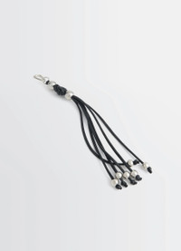 To celebrate Mid-Autumn Festival , Lemaire revisits the infinity knot - a symbol of prosperity, happiness and longevity - in a keyring version made from nappa lamb leather cord. To celebrate Mid-Autumn Festival , Lemaire revisits the infinity knot - a symbol of prosperity, happiness and longevity - in a keyring version made from nappa lamb leather cord. DETAILS Infinity knot keyring in nappa lambskin leather Model with metal engraved carabiner clasp Knotted cords and metal beads Silver-plated metalwork Made in Spain Style : SL0086 CO0027 Infinity knot keyring in nappa lambskin leather Model with metal engraved carabiner clasp Knotted cords and metal beads Silver-plated metalwork Made in Spain Style : SL0086 CO0027 CARE Main material: 100% lamb Do not wash Do not bleach Do not tumble dry Do not iron Professional leather clean only Main material: 100% lamb Do not wash Do not bleach Do not tumble dry Do not iron Professional leather clean only