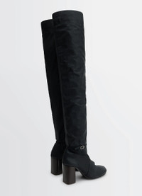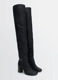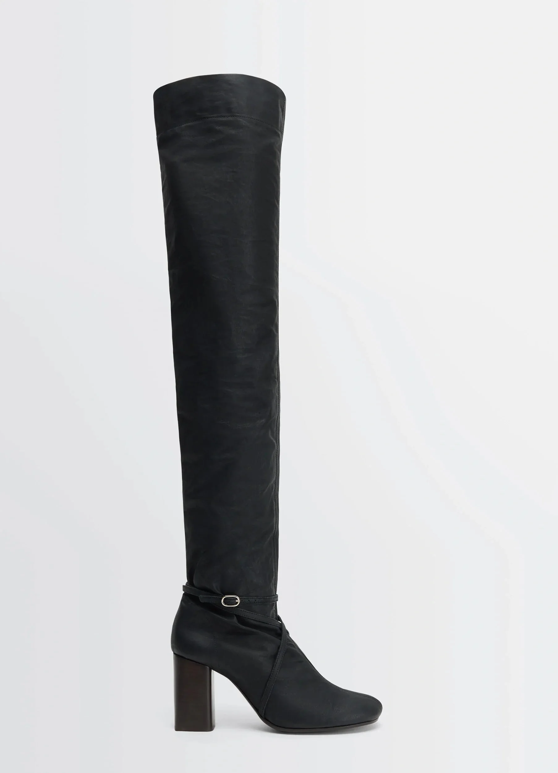 The Anatomic line is emblematic of the Lemaire wardrobe, characterized by its rounded toe and unlined construction. Lightweight and ergonomic, they emphasize ease of movement. This pair of thigh boots is made from water-repellent cotton canvas. With time and movement, the fabric develops a patina, giving the model a vintage look. The Anatomic line is emblematic of the Lemaire wardrobe, characterized by its rounded toe and unlined construction. Lightweight and ergonomic, they emphasize ease of movement. This pair of thigh boots is made from water-repellent cotton canvas. With time and movement, the fabric develops a patina, giving the model a vintage look. DETAILS Anatomic high boots with high heels in water-repellant resinated cotton Supple slip-on design Round toe Adjustable ankle strap with metal buckle Leather block heel Leather insoles and outsoles Heel height: 8 cm Made in Portugal Style: FO0219 LF1495 Anatomic high boots with high heels in water-repellant resinated cotton Supple slip-on design Round toe Adjustable ankle strap with metal buckle Leather block heel Leather insoles and outsoles Heel height: 8 cm Made in Portugal Style: FO0219 LF1495 CARE Main material: 100% lamb Main lining: 100% cotton If exposed to water or high humidity, dry your shoes well with an absorbent cloth and let them air dry before storing them. Brush them lightly with a soft brush to avoid damaging the textile fibres. Main material: 100% lamb Main lining: 100% cotton If exposed to water or high humidity, dry your shoes well with an absorbent cloth and let them air dry before storing them. Brush them lightly with a soft brush to avoid damaging the textile fibres.