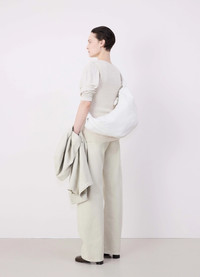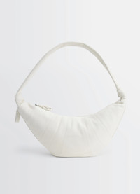 This classic LEMAIRE bag, the largest of the Croissant bag family, is made of soft grained leather that is supple yet resistant. Inspired by the shape of a croissant pastry, the bag's design is achieved through an assembly of topstitched cutouts. Its ergonomic shape wraps around the body for an easy, casual wear. It features a matching looped zip puller, side knot finishings, a side zipped pocket and a removable A5 pouch. It can be worn as a shoulder or crossbody bag. DETAILS Cotton canvas lining Metal zip Interior patch pocket Removable A5 pouch Length 27 cm Width 6 cm Depth 11 cmMade in Spain Style : BG0000 LL0018 FABRICS & CARE Main Material: 100% Cowhide Leather Main Lining: 100% Cotton Do not wash Do not bleach Do not tumble dry Do not iron Professional leather clean only