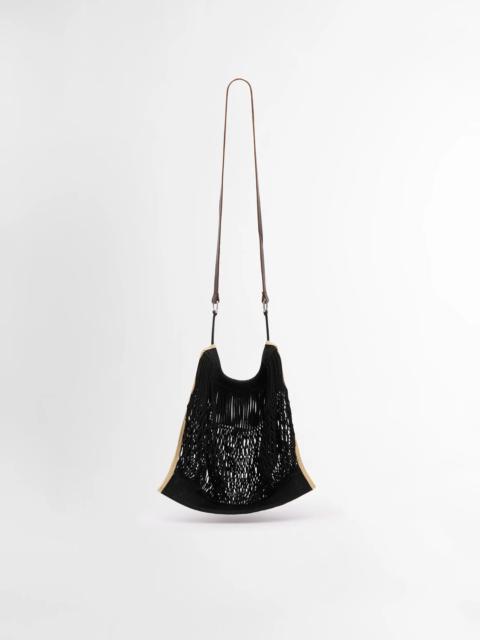 This unisex bag is the fruit of a collaboration between LEMAIRE and FILT, France's oldest net shopping bags manufacturer, in operation since 1860. It is the largest of the line. Thought as an elevated interpretation of a daily object, it is made in delicate nylon associated with a dark chocolate vegetable-tanned leather strap. Both spacious & compact, the Large Crossbody can contain essential accessories such as a smartphone or a 11x18cm/4x7in book. The length of the strap allows it to be worn as a shoulder or cross-body net bag. DETAILS - Leather shoulder long strap - Height of the leather strap: 57 cm / 22,5-inch - Length: 30 cm / 12-inch - Width: 32 cm / 12,6-inch - Depth: 1 cm / 0,4-inch - FILT x LEMAIRE inside label - Main compartment (can contain accessories, an 11x18cm/4x7in book, a smartphone) Made in Spain & France Style: BG0075 LF1269 FABRICS & CARE Main Fabric: 100% Polyamide/Nylon Second Fabric: 100% Cow